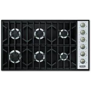 Viking VGSU164-6BLP 36-Inch Professional Series Propane Gas Cooktop With 6 Burners - Black. VGSU164-6BBKLP. Propane Stove Tops. Viking leads the way to a better cooking style with this 36-inch professional series cooktop. Experience the luxury of a continuous grate cooking surface, which allows you to easily relocate pots and pans on your cooktop. This Viking cooktop is equipped with an exclusive automatic electric spark ignition system, promising a spark every time. Each high performance burner brings the promise of professional cooking to your kitchen, and the permanently sealed design means you spend less time cleaning your cooktop surface, and more time enjoying your experience with Viking. Four propane gas burners push an impressive 51,500 BTUs of cooking power. For your convenience, this range includes island trim.
